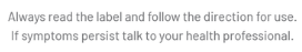 Always read the label and follow the directions for use. If symptoms persist, talk to your health professional.